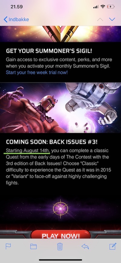People want to know the Release date of the Back Issue #3 (also known as Variant 3), but Kabam has not mentioned it anywhere on the forum. However, some summoners have received the email informing that they have got free Summoner Sigil trial and the same email also includes the information about the Back Issue #3 release date.