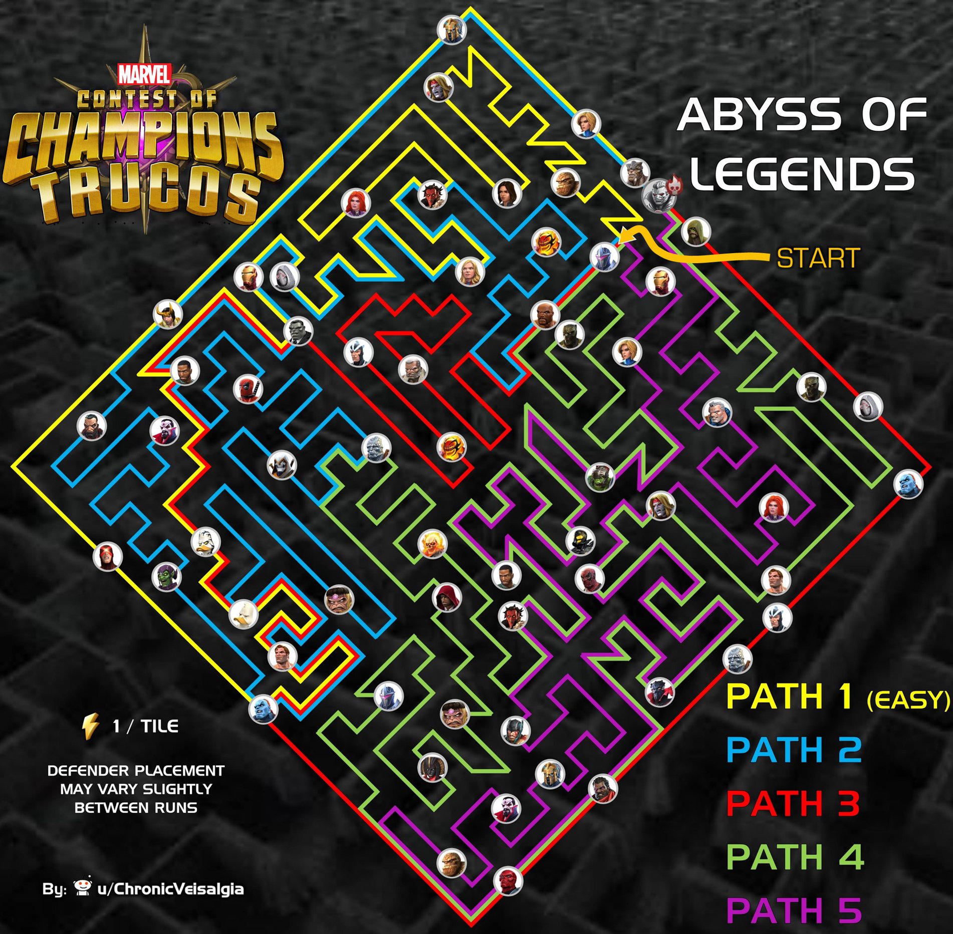 Before we discuss the team you should use in Abyss, let’s have a quick look on the map to understand what I am referring to when I say Path 1, Path 2 or so. If you need Abyss Of Legends Map or Path Map with Node Details, visit this page. We will also be discussing each fight and the best counter along with alternatives if you don’t have that champion.