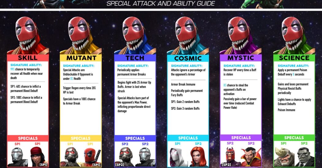 Back Issue 8 or Variant 8 Deadpoolooza has used Deadpooloids as minions. They are available in all classes and use special attack animation of various champions. So if you want to know what animation they use. Here is a quick infographic to help you.